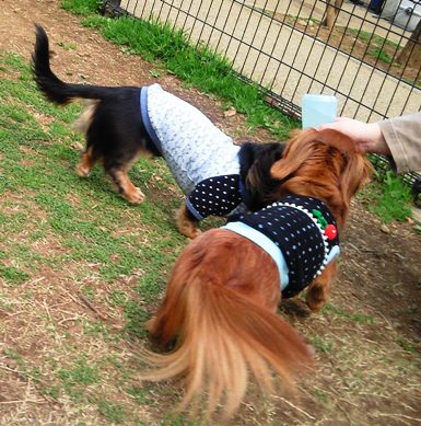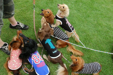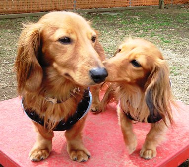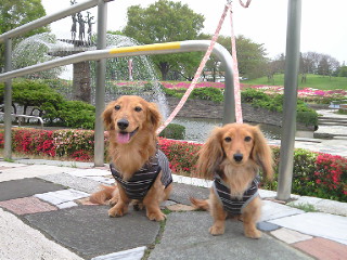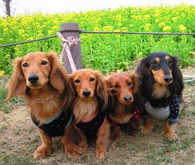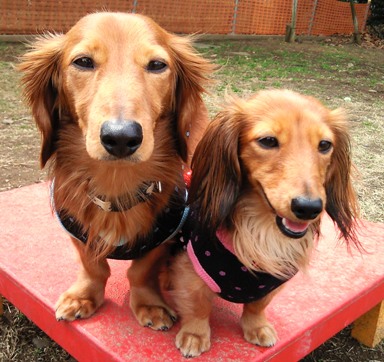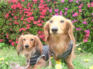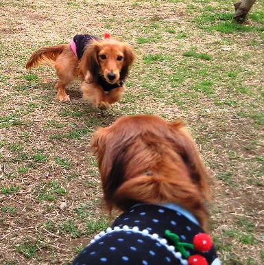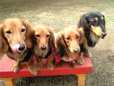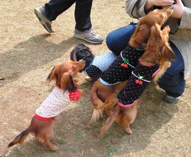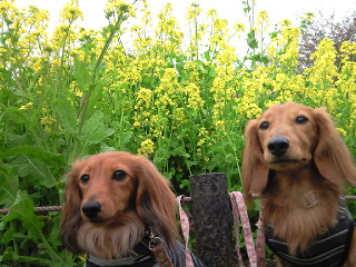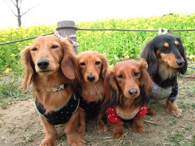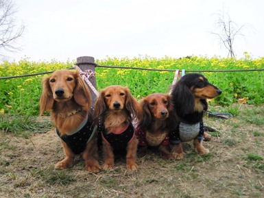 今日は久しぶりに昭和記念公園に行ってきました~ さくらんぼもランでは大はしゃぎ~ 最初はSAKURAのが楽しそうだったけどさすがに2日連続お出かけはお疲れ? 後半はまったり~ そして逆にMOMOは途中からやたらご機嫌な感じで遊んでました~ 今日は昭和記念公園の偵察ともう1つ目的が~ さくらんぼと同じブリーダー出身のココア君(向かって一番右)とアクアちゃん(右から2番目)に会うため~ ココア君はSAKURAの甥っ子にあたり、アクアちゃんはMOMOとおばーちゃんが一緒なので従姉妹にあたります! さらにアクアちゃんのひいじいちゃんがSAKURAのパパなのでここもつながってる関係~ だから会いたいと思ってたのがついに実現~ お互い最初は吠えてましたがそのうち仲良く~ まぁ、絡みはなかったけどいい感じにはなってました~ ただし、男の人が苦手なMOMOはココアクちゃんのパパさんにず~っと吠えてたけど…(;^_^A すみません~ その逆に男の人が大好きなSAKURAはかなり擦り寄っていってましたけどね~ (ときおり、ココアクちゃんに『うちのパパだぞ!』って言われてたけど~(笑) ココア君はSAKURAに負けず劣らずのママ命っこでママから離れず~ そしてアクアちゃんはボール大好きでMOMOと行動がそっくりでした~ しばらくランで遊んだあとは園内をお散歩~ 散歩中のが4ワン仲良く並んで歩いたり擦り寄ってたりしてました~ 園内にお花畑があるからそこで写真を~ って思ったらまだまだ咲いてなくてガッカリ~(-_-メ) 途中で休憩したりして楽しく談笑~ そのうち寒くなってきたので再びお散歩しつつ~ そしたら1ヵ所菜の花が咲いてるところがあってそこで仲良く並んで撮影~ 近い親戚さんなのに4ワンで一番似てるのは遠い親戚のSAKURAとMOMOだったり~(爆) ココア君はどことなくやはりSAKURAに似てるかな? 同じ顔してる写真あるし~(笑) そんなこんなで園内を一回りしたらいい時間になったのでバイバイして帰宅~ ココア君、アクアちゃん、ママさん、パパさん、今日は遠いところありがとうございました~ また機会があったら遊びましょうね! 帰宅の途中、またもやてりたまを買ってしまったママ…Σ( ̄□ ̄;) どんだけ毎日てりたまれば気が済むんだろうか…(爆) *今日のおまけ SAKURAにチューするご機嫌なMOMO♪ ちょっと癒しの1枚です!笑 |