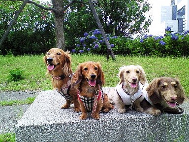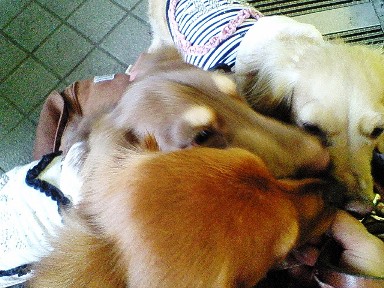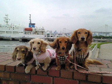 今日は雨予報かと思いきやお天気に~ そして昼間はあちあちだから夕方に遊ばせる予定で15時集合~ ポップまま(ポップちゃん、フラッペ君)との再会は毎回感動? みんなおおはしゃぎ~ そして今日はウ゛ィーナスフォートでドッグフェスタがやっていたので覗きまわり~ クイズラリーがやっていたのでポップままと参加~ クイズに正解で1回福引きができるんでやったらハズレ賞でお手入れタオルをもらいました~ ま、これもうれしいけど~ 1等はワンコと泊まれるホテル宿泊券だったみたいだけどね~ そうこうして涼しくなってきたのでいつものようにお散歩開始~ 前回人が多くておもっきり遊べなかったから今日はロングリード持参~ が、しかし!( ̄□ ̄;)!! ロングリードで戯れるとすごいことに~ 特にMOMOとフラッペ君とSAKURAが激しく遊ぶからね~ 絡まる、ぶっとぶ、引きずられるって感じで~( ̄∇ ̄|||) だから結局不完全燃焼~ それにロングリードを操るのに必死で写真も撮れないし~笑 そんなこんなでやっと撮れた写真はこんだけ~(しかもほとんどポップままに撮ってもらったもの・・・苦笑) だって今日もスポットごとに人がいるんだもん~ 写真もなかなか撮れなかった~(T_T) そしてパピーでディナーとデザート その後砂浜でひと遊び~ これまたロングリードを操るのが大変なあげくSAKURAのテンションはかなり上がり、めずらしく自分からフラッペ君やMOMOを遊びに誘ってた~ 楽しそうだったけどやはり人が多いしロングリードも絡まるから敢えなく撤収していい時間だったのでバイバイ~ ポップまま~今日もありがとでした~ (写真もありがとう!!) |