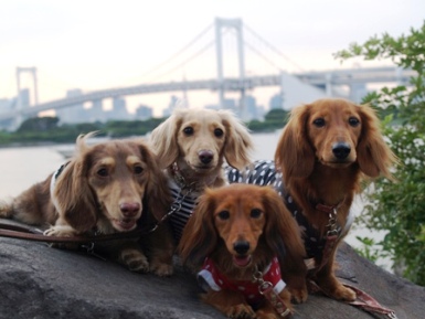 今日は週末お台場会の日~笑 朝まで仕事だったママ、しかも少し残業で遅くなったあげく、天気も良すぎで暑いからいつもよりやや遅め集合~ 13時にポップままと待ち合わせ~ いつもながらSAKURA、MOMOとポップちゃん、フラッペ君の感動の再会はホント素敵ね~爆 そしてまずはウ゛ィーナスフォートで涼しくなるまでランチ&ショップをみてまわり、あとは人間観察したり~ 人間観察にベンチに座ってる間、またママはうたた寝~笑 そして涼しくなりはじめ夕方4時くらいからお散歩開始~ しかし、今日はホント人が多い? いつもは誰もいない原っぱも人がぼちぼちいたりして~ いつもよりあまりはしゃげなかったね~笑 そして写真とったりして2時間くらい散歩~ その後パピーでディナー&スイーツをして、その後もまだ明るい? 日が長くなったね~ っていいつつもう一遊びしたいところだったけど、人が多くて遊べそうになかったからバイバイして帰宅~ 今日も楽しいお台場会でした~ ポップままありがと~ 今日はいぬぱんも食べてワン達は嬉しそうでした~ |