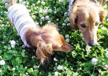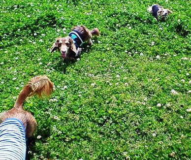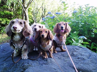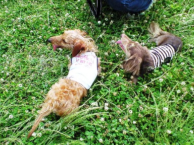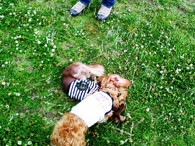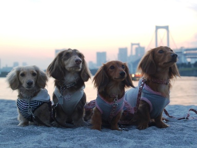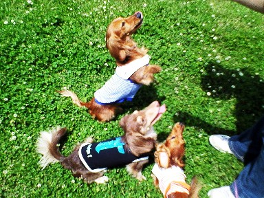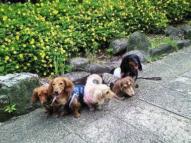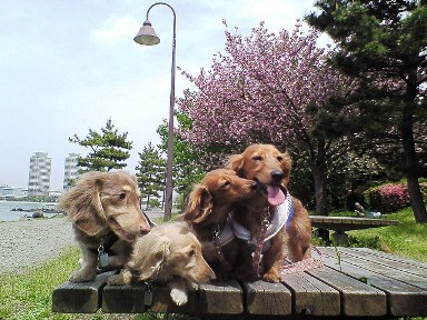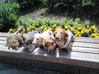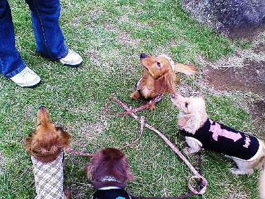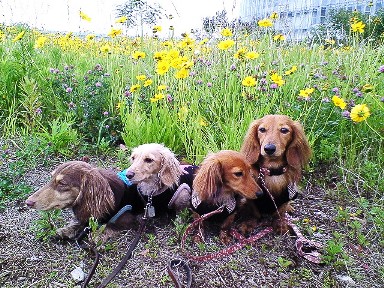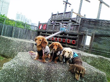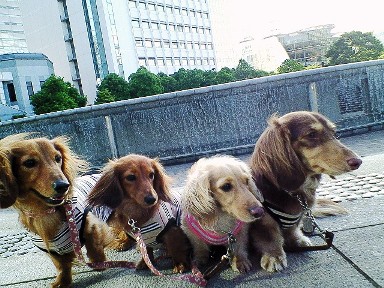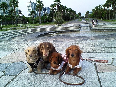 ママもそろそろ復活しないと~ ってことで今日は久々にポップまま(ポップちゃん、フラッペ君)とお台場会~ 待ち合わせは早めの10時半~ 再会するなりテンションアゲアゲの4ワン~ 特にMOMOとフラッペ君はかなり一気にテンション急上昇でした~笑 そして逆コースでまずは一回り~ いつもの人影少ない公園通りは藤だなに集まるクマバチに恐怖するママ達~ しばらくはここは通れないね~ っていいつつ、広い原っぱに出ると人もいないのでワン達は大はしゃぎで走り回る~笑 ホントみんなうれしそうに走ってた~ もうはしゃぎすぎてお昼のランチタイムにはくったり~笑 今日のランチはパピーで~ 久々のオムハヤシ~うまい! ってデザートは一口でしたけど~笑 そしてランチ後はウ゛ィーナスフォートへ~ 少しおやつを買ったりおもちゃを買ったりしつつ、ペットパラダイスでは新作をみたり~ ペットパラダイスもホント以前に比べたら多頭飼いを意識してるよね~ そしてそのあとはみんなでまたプリクラ撮影~ 今日はポップままのおやつ作戦でわりとみんなカメラ目線で可愛くとれた~ その後またぐるりと回りつつも、もうワン達も力弱め~笑 写真撮ったりして、今日は私の体調も気遣い、日が暮れたらバイバイ~ ポップまま~今日もありがと~ |