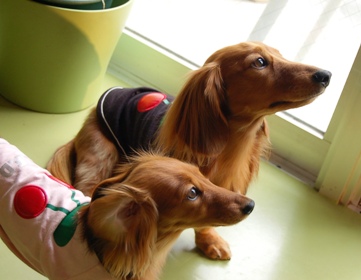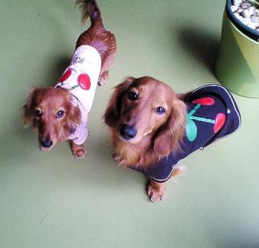 吠えるには理由が・・・そう考えると インディはウェンが来てから吠えるコになったんですよね 小さいときは人に対してはきわめて社交的だったのに・・・ ウェンがビビるから守ってるのではって言われたこともありますよ トレーニングで少しずつ不安が解消されるといいですね おそろいのチェリー柄のお洋服かわいいな 私も春はてりたま食べないと気がすまないの この時期だけは足繁く通わねば! |