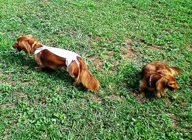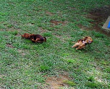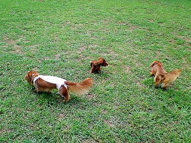 そして、パピちゃんも加わっての夢のレッドダックス牧場~(^▽^) 最後の写真て奥がフラウだよね? 本当に分からなくなったよね~^m^ |
