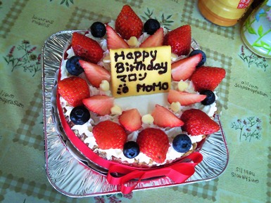 先日はホント楽しかった~ありがとうございました~ MOMOね~可愛くなったなぁって今回の写真みて思った・・・爆 やはりちょっとずついい関係になってきたからかな。。。 こんなオバカ一家ですがこれからもよろしくです!! ってケーキ無事に運ぶことだけ考えて歩いてましたから~ 任務をしっかり果たせてよかったですわ!! |