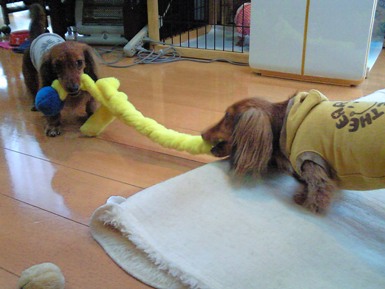 今日はMOMOの2歳のお誕生日~ そしてさくらんぼのanego的存在のマロンちゃんの8歳のお誕生日~ マロンままとお休みが合ったので以前から合同お誕生日会を計画していた~ が、しかし、マロンままが靭帯損傷であまり動けない状態… でもせっかくのお誕生日会なので~ ってご好意に甘えてマロッピーズ邸でお誕生日会をすることに~ MOMOは朝からご機嫌~♪ 今日は一張羅でおめかしして? マロッピーズ邸へ~ そしていつものようにマロッピーズから歓迎の儀式を受けて~(笑) みんなテンションアゲアゲ~ そしてママ達ご飯のあとの予定だったんだけど、ご飯がお昼時で1時間以上先にしか来ないということで待ちきれなくて先にお誕生日ケーキを~ 今日のケーキはCOCO'S SWEETSさんのお誕生日ケーキ~ ベースはおいものケーキ~ バナナケーキはSAKURAが主役みたいに喜んでしまうので、あえておいも~(笑) マロンちゃん8歳のお誕生日おめでとう!! MOMO、2歳の誕生日おめでとう!! この撮影中テーブルの下ではかなりみんな大騒ぎ状態でした~(爆) そしてみんなで分け合っていただきました~ 7等分とはいえ、かなりのボリュームだった~ もちろんママもさくらんぼのを少しつまみ食いしたけど~(爆) かなり美味しかった~(笑) みんな美味しそうに完食~ っていうかみんな取られまいとかなり部屋中に散らばってたけど~(爆) まぁ、みんなちゃんと舐めて後片付けまでしてたけどね~(;^_^A そしてワン達がお腹いっぱいになった頃にちょうどママ達のご飯が来たのでママ達の番~ 恒例のうなまぶし釜飯~ やはりうまうまだ~゜+。(*′∇`)。+゜ そしてマロンままからプレゼントをいただきました~ 可愛いさくらんぼのフィギュア~ 可愛い!!可愛いすぎ! あとオモチャも頂きました~ マロンままありがとう!! それからワン達はみんなでオモチャで遊んだりして~ 見ててかなり笑える場面もあったり~ 大人気のボールなんて代わりばんこにカミカミ… しかも1ワンが噛んでる間順番待ちのワン達はガン見してますからぁ~(爆) SAKURAなんて頬張ってたり~(爆) MOMOとバンビちゃんはブル足争奪で遊んだり~ 暇になるとみんな甘えたりしてきて可愛かった~(*^□^*) そしてボール投げや引っ張りっこしたりしてかなり遊んだらそのうちおねむタイム~ って私が一番おねむだったみたい?(爆) いや~花粉症だから薬飲んでるせいか眠くて~ ワン達と一緒にうたた寝しちゃいました~(ひとの家で寝るな~?(爆) しかしMOMOだけは寝ずに動きまくりだったけどね~( ̄~ ̄)ξ っていうかMOMOっていつ寝てるんだろう…かなり睡眠時間少ないと思うんだけど… 今日も夜中に起きてごそごそしてたし~(爆) そんなこんなでうたた寝してたらいい時間になってしまったので写真撮ってからマロッピーズとバイバイ~ 今日は楽しい誕生日になったね!MOMO!! マロンまま、マロッピーズありがとう! マロンまま、足痛めてるときにお邪魔してすみません~ 早く良くなってくださいね! そしたらまたお出かけしたり遊んだりしてくださいね~ そして帰宅してお風呂入ってご飯のあと、さくらんぼは遊び疲れて爆眠中?です~ MOMOもさすがに眠くなったみたい?(笑) ちなみにママの晩御飯はまたてりたまりました~(爆) ついに10てりたま~\(^O^)/ って今日は包装が違ってびっくり! 間違われたのかと思いきや、中はちゃんとてりたまでした~o(^∇^o)(o^∇^)o PR |