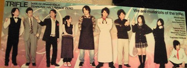 今日で楽しかった舞台が終わってしまう~(T_T) 本日佐野瑞樹くんの主演舞台「トライフル」が無事に千秋楽を迎えました~ 今日は職場の友達TAちゃんとTKちゃん、そして佐野くんのために同じ日々を過ごしたOYちゃんと4人で行きました~ ちなみにTAちゃんは前回の舞台「シェイクス」も行ったけど・・・ TAちゃんとTKちゃんは嵐FANだったりします・・・苦笑 今日も楽しい舞台でした この3日間ずっと観て来た舞台でしたが毎日ちょっとづつアドリブが増えたり、台詞が変わってたりしてとても楽しかった~ 今日は最終日だけあってかなり満員御礼状態でした しかも補助席とか通路席とかもあって・・・ すごいなぁ~って改めて実感・・・ そしてパンフレットも1冊買って毎日持ち続けていたから曲がったりしていたのでもう1冊購入~爆 FANならでの行動?爆 しかも4000円以上買うとステッカーがついてくると聞いていたけどロゴ入りステッカーと思ってたんですが・・・ 今日見たら・・・キャスト全員写ったステッカーじゃん!! これは欲しい!!! っていうわけで4000円分の買い物をしなきゃ・・・ ってパンフは1500円・・・でもすでに1冊持ってたし、3冊も新たに買うなんて・・・ そんなこんなできっちり4000円にする方法は・・・ Tシャツを買う!! Tシャツが2500円~ ラルクに行ってもグッズを買ったことないこの私が・・・ 今までジャニーズのコンに行ってもウチワ以外買ったことのないこの私が・・・ このステッカーのためだけにTシャツを・・・ はい、買っちゃいましたよ!! まぁ、このTシャツはトークショーのときに佐野君も着てたしってこともあるし・・・ 同じ黒のTシャツゲット!!爆 完全にやられてる・・・販売相手の思う壺・・・ もちろんOYちゃんも買ってた~ パンフとTシャツで4000円~ 部屋着にもなるしね~ ちなみに後ろはキャストの名前入り~ そんなわけでお金をつぎ込む私・・・ ちなみに昨日も今日も佐野君のためにチョコあげてるし~ FAN心理を読んでるね~爆 楽しかった舞台のあとは今回最後の佐野君とのふれあい~ 出待ち・・・今日も1番に手紙とチョコ渡した~ そして握手しながらトーキング・・・ マジかっこいいよ!佐野瑞樹くん!! この3日間ずっとこうして握手してくれてトーキングできて・・・ もう中毒みたいなもので・・・ 私明日からこれなしでやっていけるかな~ なんて思いつつ・・・ もう妄想と現実の区別もヤバイ状態だからね~さすがに3日間一緒にいる時間があると・・・ OYちゃんとふたりでもう佐野君に釘付け!! 握手し終わったあとも他のFANとふれあってる佐野君をまるでストーカーのように?ずっと見つめるOYちゃんと私・・・ しかも佐野君ってホントいい人だし優しい人だし、低姿勢だし・・・ だってFANから佐野君に近づくというより佐野君からFANに歩み寄ってるんですよ! 今日は長蛇の列だったんだけど1人1人丁寧に握手してはお話して・・・ 2時間半くらいかかってFANのために時間をつかってくれた佐野君・・・ 寒いのに嫌な顔もせず、みんなと! しかも1人5分以上話てくれたりしてるんですよ!! ちゃんと目をみて話してる佐野君・・・ たまに視線をはずすときにその視線の先にたってたりするともうドッキドキ!! どの角度からみてもかっこよかった~ ホント好きになってよかった・・・爆 そして2時間半くらいでやっとFAN全員とのふれあいが終わって最後にみんなにバイバイしてくれた・・・ 両手いっぱいのFANからのプレゼントかかえてね!! 最高ですよ!!マジで!! しかし今回の舞台の出待ちで感じたことは明らかにFANが増えてない?? こんなに長蛇の列を見たのは久しぶりかも・・・ 彼はTVにほとんど出ることないし・・・舞台でこうしてみんなを大切にしてくれて、いい舞台もやってるうちにFANが増えたってこと? そう思うとやはり佐野瑞樹ってすごいかも・・・って思った・・・ 34歳に見えないし・・・いつまでたってもイケメンジャニーズだ!! 佐野瑞樹のFANになって14年・・・いつまでたっても変わらないでいてくれる佐野君に感謝・・・ ありがとう!瑞樹くん♪ そしてその後4人で飲みに・・・ この場におよんでずっと嵐の話をするTAちゃんとTKちゃん・・・ でも佐野君のことも 「やっぱり佐野君はアイドルスマイルもできる典型的ジャニーズだと思った~かっこいいし、もっと露出してもいいのに・・・」 と・・・ 確かにもっとTVとかにも露出して欲しい気もするけど・・・ 今のように近くに感じることができなくなるなら今のまま舞台だけでいいと思うOYちゃんと私・・・ また早く逢いたいなぁ~ まだはっきり言えないけど、また舞台の話はあるみたいだし・・・ OYちゃんとまた盛り上がらねば!!爆 最終日だから長々と書いたけど・・・ ホントいい舞台でした! キャスト全員いい仲間って感じのするとっても素敵な舞台でした 他のキャストのみなさんもありがとうございました そして瑞樹くん・・・お疲れ様でした! |
