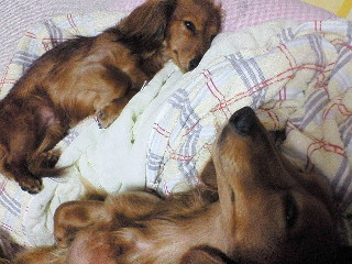 7月・・・自信ないんですが私もあとは神頼みです・・・苦笑 やっぱりmomoさんの家のレオンくんとシュウちゃんもそうでしたか? やはり先住犬で男の子だし負けて欲しくないですよね・・・ でも正直本とかにはワン同士で上下を決めるって書いてあって仕方ないのか?? とかも思ったんですがどう見てもSAKURAは遠慮して本気だしてないのをいいことにMOMOが威張ってる気がして・・・ SAKURAビイキの私としては納得いかなかったんですよね・・・ でも今回のお泊りでMOMOも己がどれだけ身の程知らずだったかわかった?みたいです・・・笑 ある意味以前よりなんかいい感じで仲良しなのでホントお泊りで成長させてもらったなぁ~って思いました レオン君としゅうちゃん、SAKURAとMOMO、似たもの同士これからの成長が楽しみですね!! |