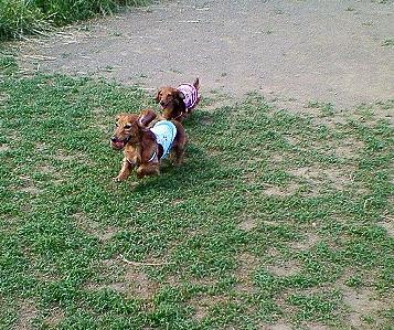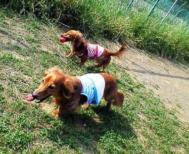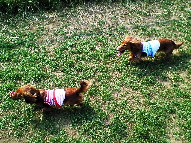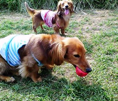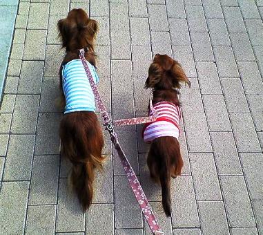 で、早速お出かけ。。 で、5キロ~?!どんだけ~?!ヾ(≧▽≦)ノ でも分かるな~。 SAKURAちゃんとMOMOちゃん、笑顔最高ですもん! カワイイ~゚+.(´∀`*).+゚. すごく楽しそうだし、こういう笑顔見れば 少々の痛みも忘れますよね~ って、今頃また痛みが出てたりして・・ 大丈夫かな? まだ股関節も治ってないし、あまり無理しないでくださいね~ 今回のお洋服も、シュウとオソロです(*^m^*) 黄色と赤を持ってるんですが MOMOちゃんたちみたいに、シュウもいつも お尻のところがめくれてます(*≧m≦) |