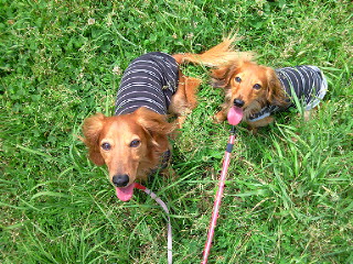 ママが瑞樹に色ボケ(爆・言って見たかった!)してる間、意外とシラ~っと「はいはい」って見てたに違いない! SAKUちゃんは「ママちゃんがうれしいならいいよー」って言ってそうだよね~。 きっともーちんは「ママ、変でつ」って?爆 それにしても最後の「V」みたいな写真、いつもこの2ワン、こんなポージングするけどかわぇえのぉ~! |