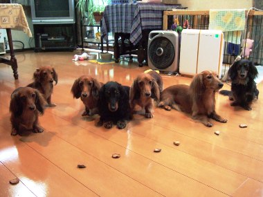 今日も雨・・・ お散歩に行ってないさくらんぼはストレス全開~ 仕方ないじゃん!! なので今日はマロンママにお願いしてマロッピーズ邸で遊ばせてもらうことに・・・ これで満足でしょ~ そして朝まで仕事をして終えて帰宅後準備してマロッピーズ邸に~ 準備の段階でさくらんぼはワクワク~ 行くことがわかると玄関で待機~ 「ママちゃん!早くキャリー出してください!!」 といわんばかり・・・ そしてキャリーを出したとたん速攻2ワンともキャリー内に・・・ 「ホント好きだよね~・・・笑」 そしてお昼にマロッピーズ邸に到着~ とんちゃんがお迎えにきてくれた~ そしてマロッピーズも待ちきれないみたいでお外まで呼んでる声が聞こえた~笑 お家に入ると感動の再会~ SAKURAなんていつもより2オクターブほど高い声になるんだよね~爆 そしてママもマロッピーズに歓迎されてお部屋に~ いつみても楽しそう! マロンちゃんも 「Mizukiおばちゃん、今日のおもちゃは何ですか??」 ってキラキラした瞳でいってるし~笑 そしてサマーカットのチャッピー君も涼しげでお尻が超キュートだったぁ~ ミルキーちゃんも「Mizukiおばちゃ~ん」って腕の中に飛び込んできてくれるし・・・ とんちゃんも「おばちゃん、今日も遊びましゅか?」って・・・ そしていつもは遠巻きから見てるバンビちゃんに変化が!! ワンと人がちょっと苦手なバンビちゃん・・・ いつも遊びに行ってもマロンままの後ろからみんなが遊ぶのを見てるだけだった・・・ でも今日はなんとMOMOを意識してくれて、MOMOが近づくとちょっとハニカミ・・・ 「あれ?もしかして??」 って思ったらMOMOと一緒に遊びだした~ おぉ~!!!すごいじゃん!! ママ達はこの光景をどれだけ待ちわびていたことか・・・ しかもよく考えてみたらMOMOっていつも男の子としか遊んでないんだよね・・・ MOMO自体男の子みたいだからかいつも遊ぶポップちゃんもMOMOは遊ぼうって行くけど 「もーちゃんは弾丸みたいでうざいし、おしとやかに遊べないから無理!!」 って言われちゃってたもんね~笑 そんなMOMOと一緒に遊んでくれるバンビちゃんにママも感激~ MOMOってホント最近どんどんチンピラみたくワンには強気だし・・・しかもうざいし・・・爆 こんな女の子嫌われるよ~って思ってたから・・・苦笑 これからもたくさんバンビちゃんと遊んで仲良しになってくれるといいなぁ~ まぁバンビちゃんのママ、ミルキーちゃんには 「バビ!もーちゃんと遊ばない!!」 って怒られちゃったけど・・・爆 ミルキーちゃんはSAKURAが大好きだからMOMOをライバル視してるみたいで とんちゃんとMOMOが遊んでても 「うちの息子をたぶらかさないで~」 って感じ?だし・・・爆 ホント見てると笑える・・・ ミルキーちゃん見てるとワンにも恋愛感情ってあるんだね~って思っちゃうもん・・・ そしてSAKURAもマロンママにたくさんオヤツもらえて上機嫌だった~ しかもSAKURAがいつもワンワン吠える場面ではいつもより全然少なくなってたことにもビックリ! トレーニングも無駄じゃなかったね~(吠えはするけどね・・・) 今日はホントいつも以上にいろんな成長がみれて楽しくて嬉しい1日だった~ マロンママ、マロッピーズありがとう!!! マロンママお写真もありがとう!! (今日はママがマロッピーズと遊ぶのに夢中で写真撮るの忘れてた~今日の写真はマロンママ提供のものです~) ちなみにあと今日は姪っ子AKIちゃんの18歳の誕生日~ AKIちゃんおめでとう!!! 18歳・・・うらやましいなぁ~若くて!!爆 |