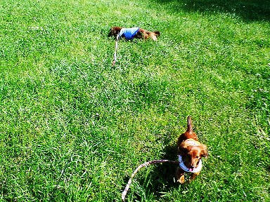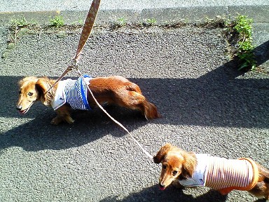 今日は金曜日・・・ 本当はトレーニングに行こうとも思ったのだけど、トレーニングってことは1ワンはお留守番になってしまうし・・・ GWはすっかりマロッピーズとのお泊り合宿で、昨日はママはカラオケだったし・・・ そう2ワンともママと遊んでないんだよね~ なので今日はトレーニングは予定にいれず、SAKURAとMOMOと3人で遊んだ~ ってやっぱり野川だよね~ (本当は他に遊びに行こうかと思ったけど。。。) 今日はアチアチだったので洋服をお水で濡らしたり、水分補給しながらしっかり4時間遊びました~ 今日は行きにJ○ートで5mのロングリードを買ってみた・・・ 5mって意外に長い? SAKURAにとってはもう少し伸びるともっといいかもだけど、MOMOなんて伸び切らない状態で十分走ってた~笑 SAKURAには10mリードがあればいいかもなぁ~ って思いつつママもたくさん走ったから帰りはちょっと足が痛かった・・・爆 帰りは十分遊んだから満足そうな顔して歩いてた~ また明日からお留守番よろしくね!! PR |